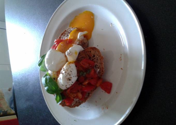 Recipe of Speedy soft boiled eggs with tomato and basil and halloumi